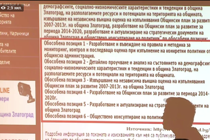 Материалът, разкрит в неизлъченото предаване на "Шоуто на Слави" вчера, за който се твърди, че е бил спрян и в Нова тв, се оказа за обществена процедура на кмета на Златоград. Става дума за сключен договор между градоначалника и фирмата "Арнед пойнт" ЕООД, чийто собственик е депутатът в първия мандат на ГЕРБ Недялко Славов, който след това е областен управител. В мандата на Пламен Орешарски, докато не е в парламента, Славов решил да регистрира фирма, разказа Иванов.