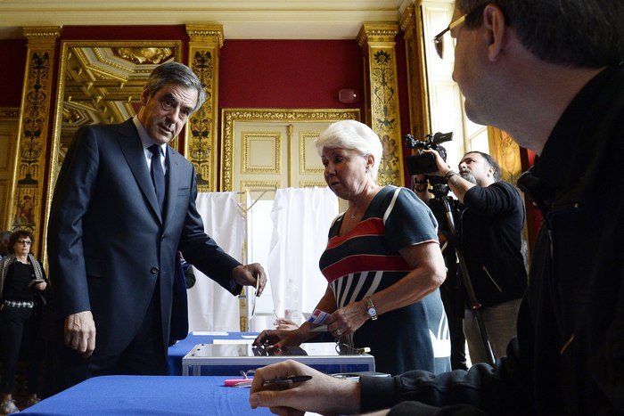 Републиканецът Франсоа Фийон пусна бюлетина в кметството на 5-ти район в столицата. Неговата съпруга Пенелопе гласува по-рано през деня в Солем.