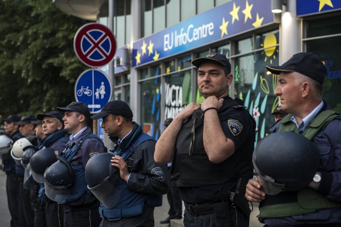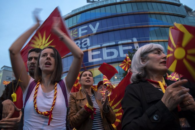 Хората са недоволни от избора на албанеца Талат Джафари за председател на Народното събрание и искаха нови избори. А мисията на ЕС стана мишена на недоволството им, защото днес Съюзът изрази явна подкрепа за албанското малцинство.