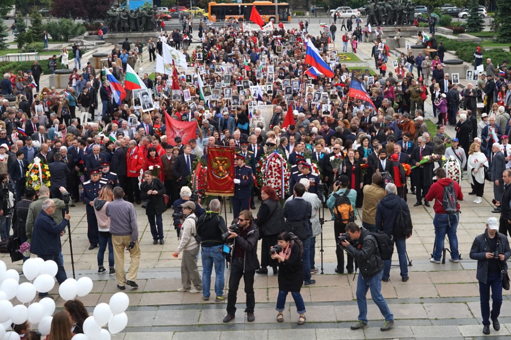 "Безсмъртния полк" се строи и в София. Организираното от правителството на Руската федерация честване на 72-рата годишнина от победата над нацистка Германия предвижда в редица държави в Европа ветерани, русофили и живеещи на място руски граждани да маршируват с портрети на загинали войници на Съветския съюз през Втората световна война.