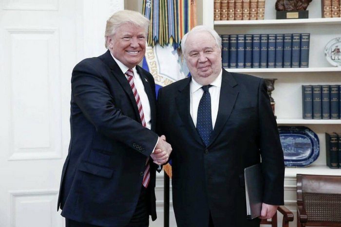 Руското посолство във Вашингтон пусна в туитър снимка на своя посланик и известен шпионин Сергей Кисляк заедно с Тръмп. Съвместната дейност на Кисляк с партньори на Тръмп по целия свят повдигна сериозни въпроси, разследвани сега от редица комисии в Конгреса. Сред тези хора са главният прокурор Джеф Сешънс и президентският зет Джаред Къшнър.