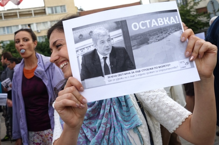 Протестиращите поискаха оставка на министъра на околната среда и водите Нено Димов.