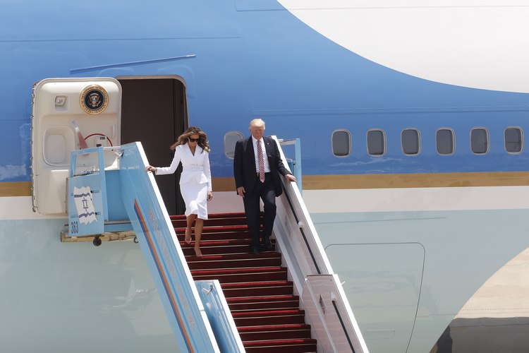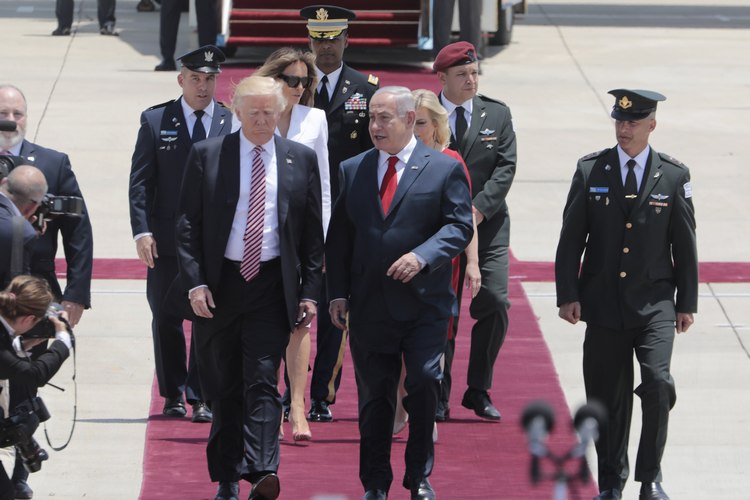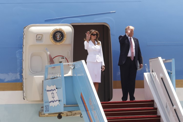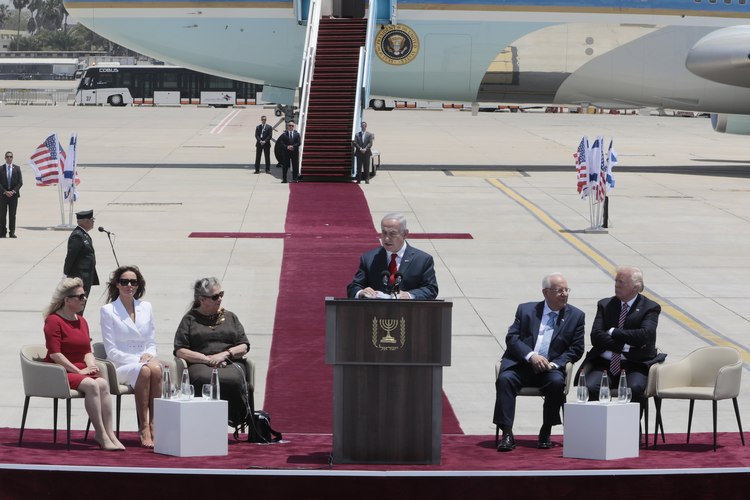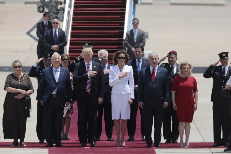 На летището на разпънатия червен килим американският президент и първата дама на САЩ Мелания Тръмп бяха посрещнати от Нетаняху и съпругата му Сара, както и от израелския президент Реувен Ривлин и членове на израелското правителство.