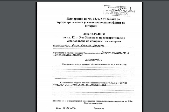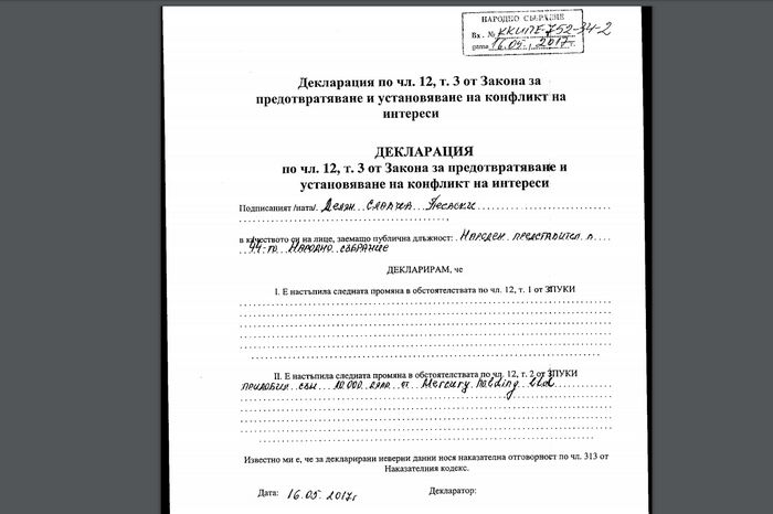 Ако става дума за едно и също дружество, защото не е ясно къде е регистрирано новодекларираното, то излиза, че Пеевски си връща собствеността в "НСН Инвестмънт". Това е собственост, от която той самият се отказа преди няколко месеца, което е видно и от настоящата му обща декларация за конфрикт на интереси (която можете да видите най-долу)