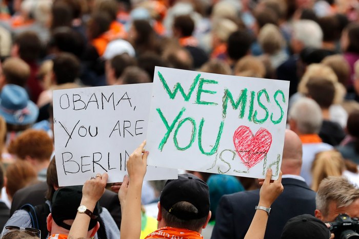 “Първо guten Tag” , каза “добър ден” на немски Обма и добави на английски: I love Berlin (“Обичам Берлин”), взривявайки вълна от аплодисменти.