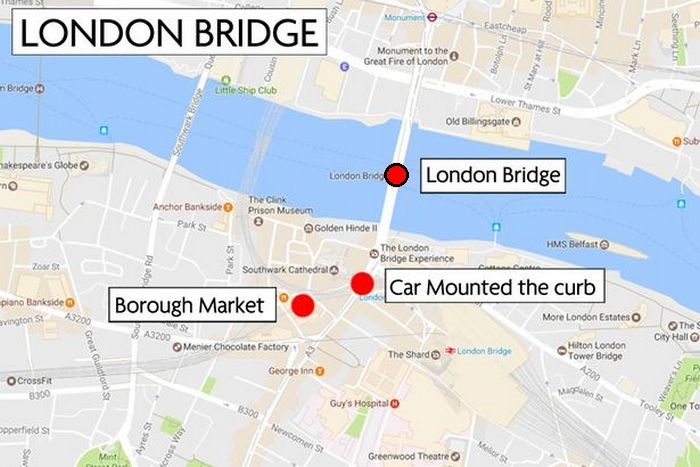 Свидетели твърдяха пред Би Би Си и Си Ен Ен, че са видели "5-6 души на земята" на моста, а след като белият ван е минал през пешеходната част са се чули и гърмежи от автоматично оръжие. Нападнати са били хора с хладно оръжие в ресторант на близкия до моста "Бороу маркет".