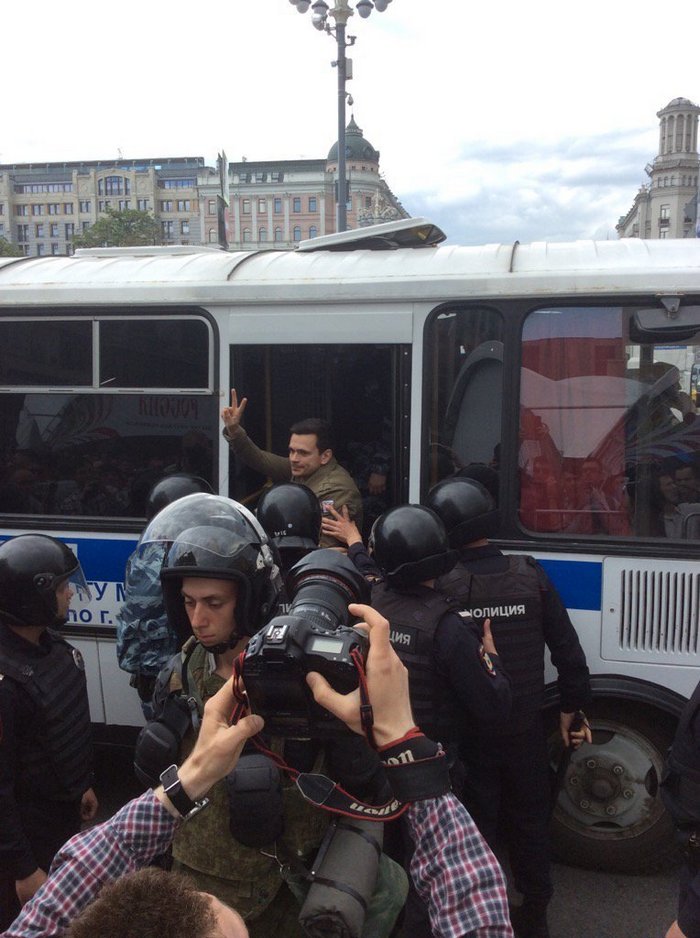 Той и десетки други били откарани в Крансопресненското отделение на МВР. Там обаче отказали да ги приемат, тъй като арестът бил вече прлетъпкан. Активистите били откарани на друго, неизвестно засега място.