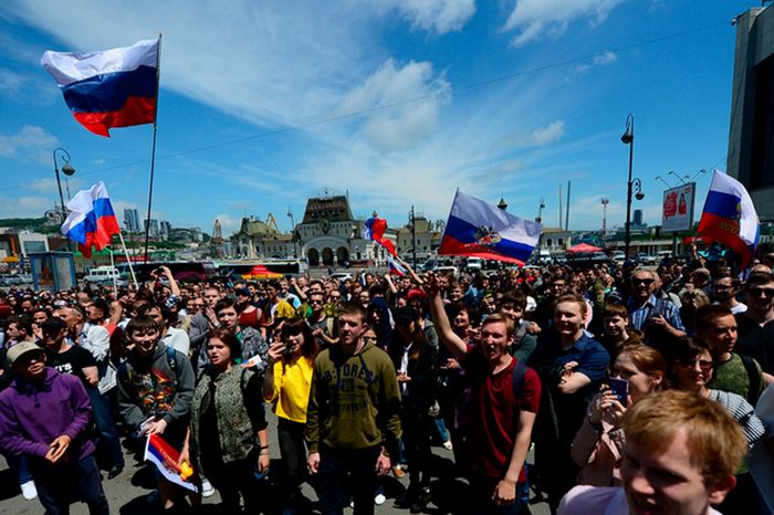 Казаци във Владивосток излезли срещу опзиционерите и започнали да ги обиждат и заплашват. Те извадили камшици и демонстративно ги размахвали. Очевидци твърдят, че казаците били доста пияни. Там са арестувани 10 протестиращи. Сред тях е депутатът от Думата Максим Шинкаренко, един от най-близките хора на Навални.