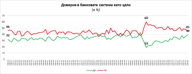 Доверието в банковата система в последните години постепенно възстановява своите стойности, след 2014 г. и фалита на КТБ. С дял от около 40% доверие, банковата система отново е една от обществените системи, в които хората най-много вярват. През 2014 г. доверието беше спаднало до 19%, а недоверието беше стигнало 60%. Сега има нормализация, твърдят от "Галъп интърнешънъл".