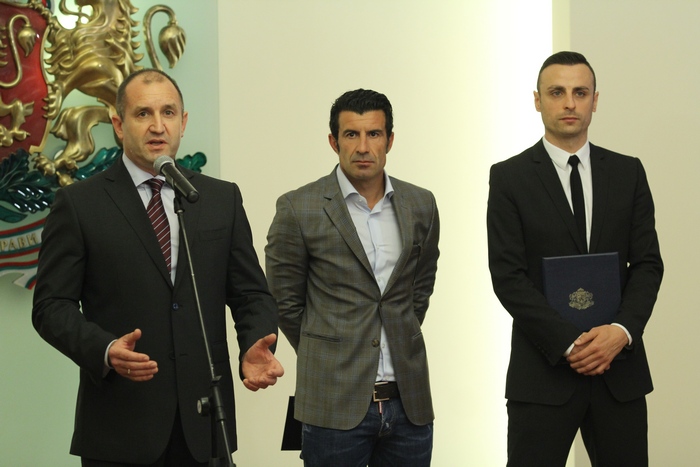 "За мен е удоволствие да връча Почетния знак на президента на Луиш Фиго и на Димитър Бербатов, каза Румен Радев. - Това е скромен знак на уважение към две големи имена от световния футбол, на признание към двама изтъкнати дарители, филантропи и големи приятели на децата. Фиго е сред най-обичаните футболисти в Португалия, носител на "Златната топка", оставил ярка следа със своята игра в "Спортинг" (Лисабон), "Барселона" и "Реал" (Мадрид), но в последните години той оставя следа най-вече с дейността на своята фондация, която подкрепя деца в неравностойно положение и деца с тежки заболявания, една кауза, заслужаваща възхищение и уважение.