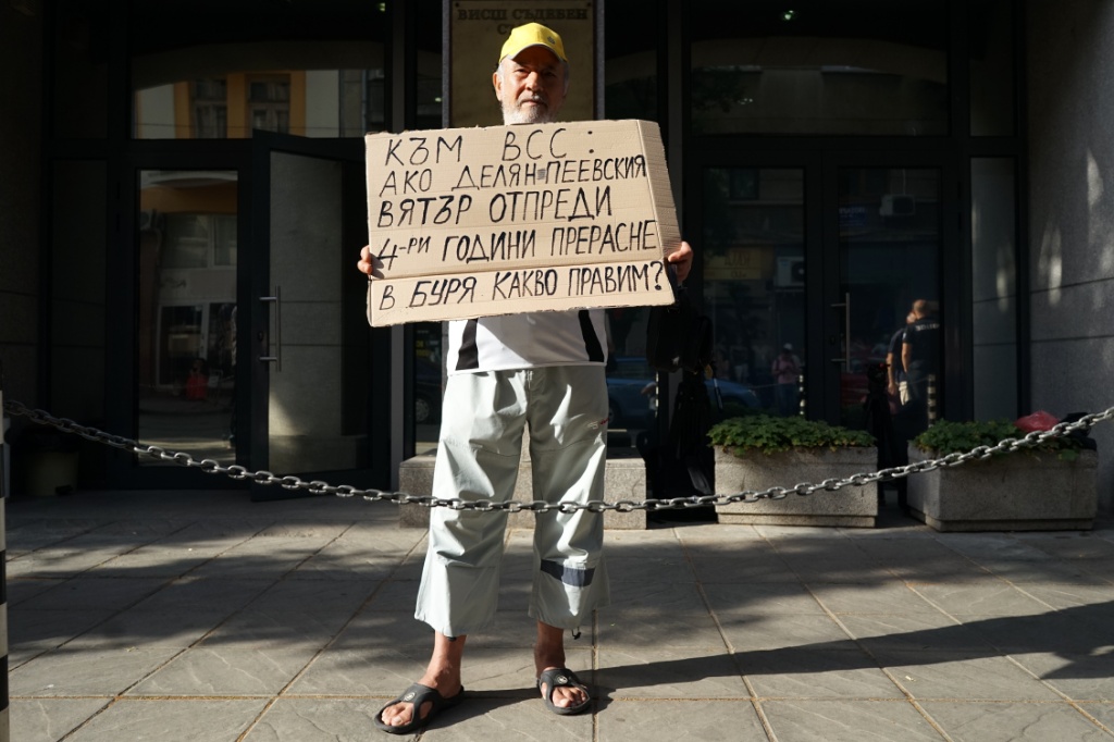 Десеткии граждани се включиха в акцията в подкрепа на председателя на Върховния касационен съд (ВКС) Лозан Панов пред Висшия съдебен съвет (ВСС) тази сутрин. Събитието бе организирано в социалната мрежа преди два дни, след като ВСС включи в дневния си ред за днес точка по повод сигнала на близката до Делян Пеевски агенция "Блиц" срещу Панов.
