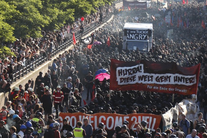 Полицията влезе в люта битка с протестиращи в Хамбург и използва сълзотворен газ и водни оръдия, за да разпръсне тълпата. Над 12 000 протестираха срещу форума на 20-те най-развити страни в света - Г-20, който ще се състои утре и в събота. Голяма част от лидерите обаче вече пристигнаха в града.