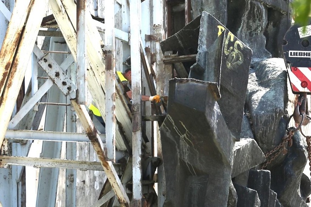 Разглобяването на паметника пред НДК е пред финала на първия си етап – почти всички бронзови пластики са отстранени. В понеделник започна демонтажът на монумента „1300 години България“. До 30 дни грамадата от бетон и стомана ще бъде изнесена от градината пред Двореца на културата. Премахването на паметника е възложено на „Софтинвест“.