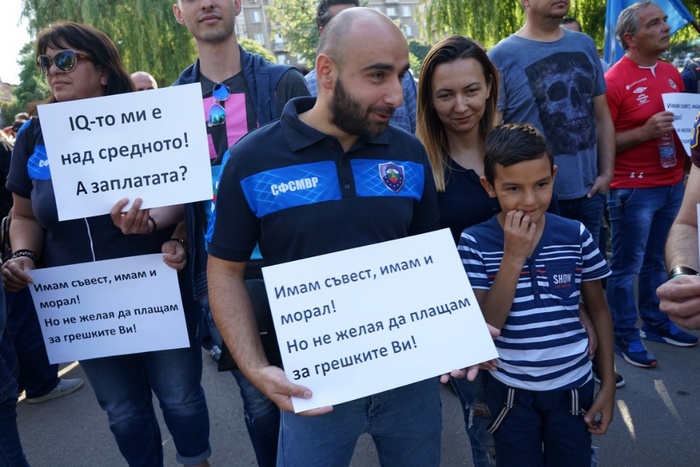 Сред лозунгите на протестиращите блесна: „IQ-то ми е над средното. А заплатата?“