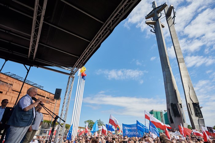 Той говори пред паметника на жертвите в корабостроителницата "Ленин", от където тръгна битката срещу комунистическата диктатура през 1981 година.