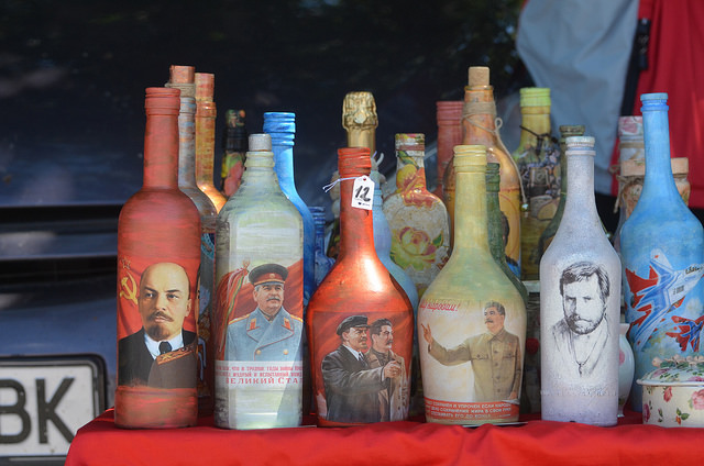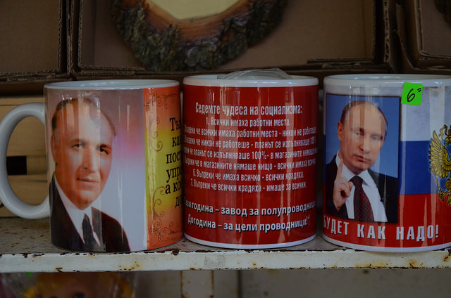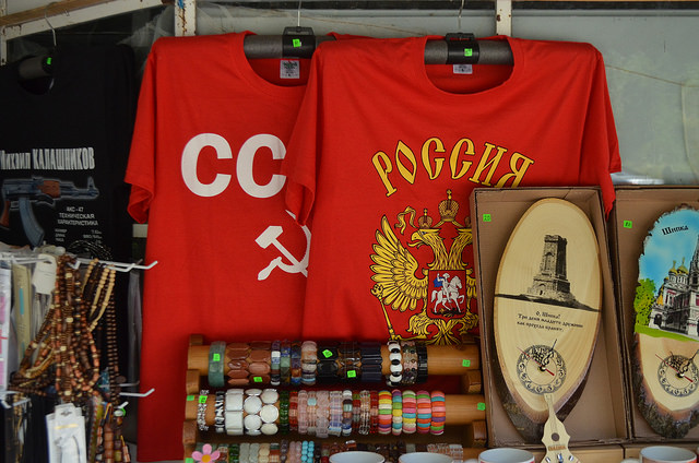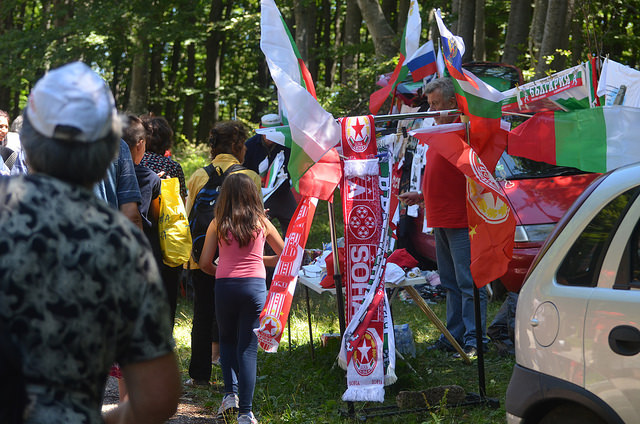 Всъщност не всичко руско – ако си мислите, че на събора някой е открил щанд и продава книги на известни руски писатели или дискове на любими руски музиканти – не, няма нищо подобно. Търговците са съобразителни хора, те предлагат само това, което се търси. А на Бузлужда се търсеха руски и съветски знамена, значки, магнитчета, тениски, шапки и друга ширпотреба с образите на Сталин, Путин, Ленин и Живков. Една жена успешно продаваше вестник „Работническо дело“ - почти същия на външен вид като вестник „Комунистическо дело“ (в главата му е вграден и образът на Вълко Червенков – за който съм сигурен, че е напълно непознат за 99 процента от членовете на партията под 60 години), и календари с ведрите интелигентни ликове на Ленин и Сталин. Кой знае защо големият отсъстващ от сергиите, щампите и речите на партийното мероприятие бе образът на другаря Георги Димитров. Лъвът от Лайпциг, ръководителят на Коминтерна, Отечествения фронт и БРП(к) сякаш никога не е съществувал.