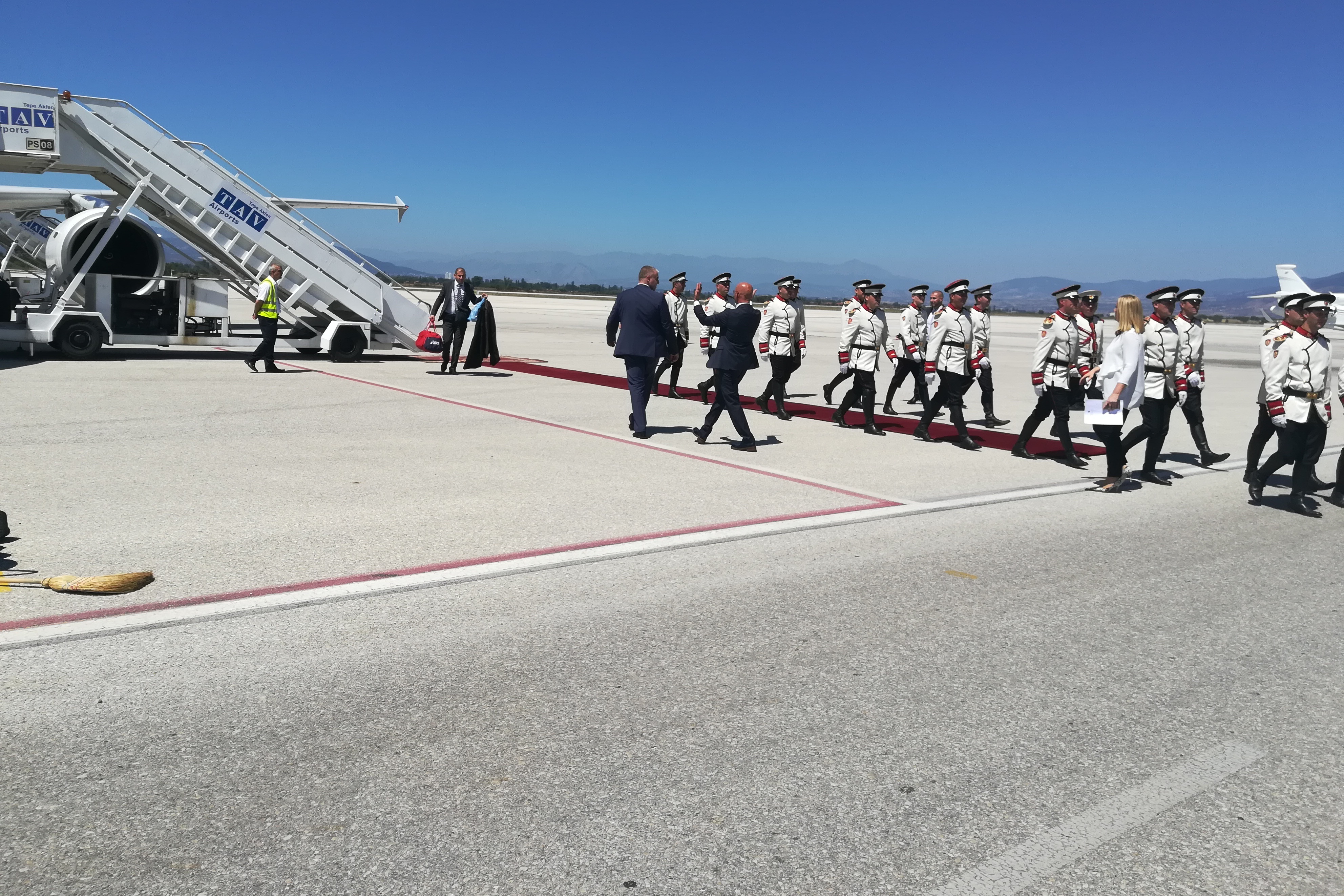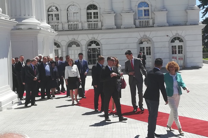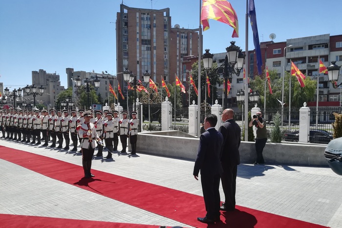 По-рано през деня Борисов бе тържествено посрещнат в македонската столица.