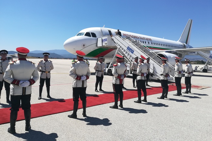 На церемонията по посрещането прозвучаха химните на двете държави
