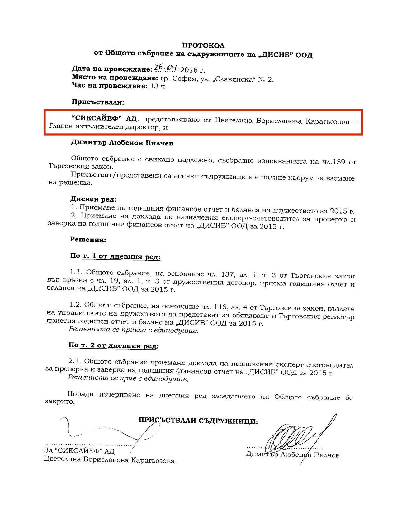 Относно единия от споменатите реализирани проекти с ветрогенератори - "Дисиб", преди време "Биволъ" разкри, че всъщност там е дружеството СИЕСАЙЕФ АД с акционер и главен изпълнителен директор Цветелина Бориславова.
