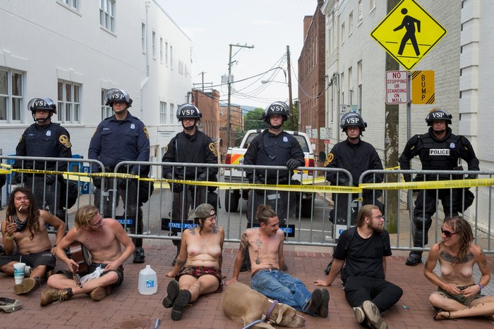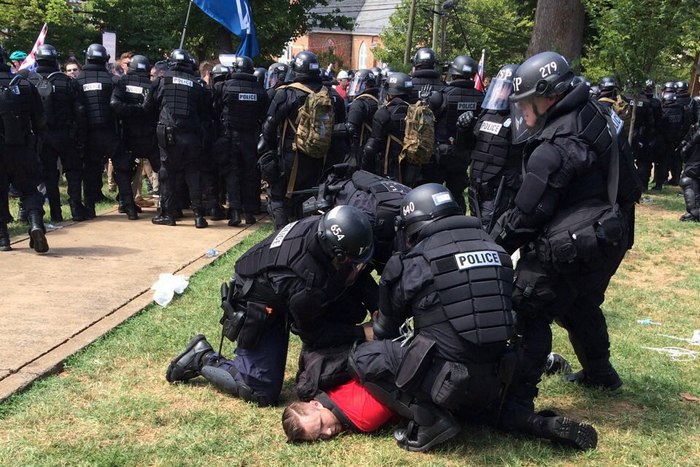 Въпреки разположените полицейски сили за борба с безредиците и националната гвардия, избухнаха сблъсъци между протестиращи и контрадемонстранти, развяващи знамена на движението "Животът на чернокожите има значение", а губернаторът на Вирджиния Тери Маколиф обяви извънредно положение.