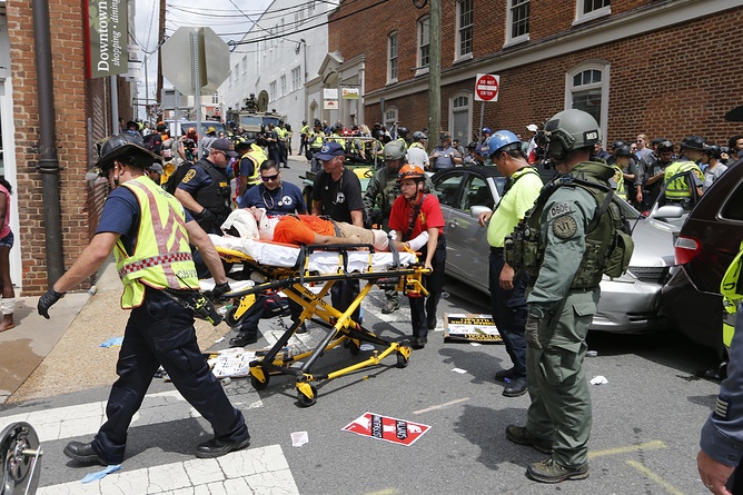 Тридесет и две годишна жена бе убита, 19 души бяха ранени, когато кола се вряза с 90 км в час в група контрадемонстранти в центъра на Шарлотсвил. Шофьорът на автомобила убиец бе заловен в момент, когато с бясна скорост се опитваше да избяга на заден ход. Мъжът, арестуван за прегазване с кола на група контрадемонстранти по време на шествие на бели националисти, бе обвинен в предумишлено убийство. На 20-годишния Джеймс Алекс Филдс-младши от Охайо бяха повдигнати и три обвинения за умишлено причиняване на телесни повреди и за бягство от местопрестъплението, съобщи полицията в Шарлотсвил.