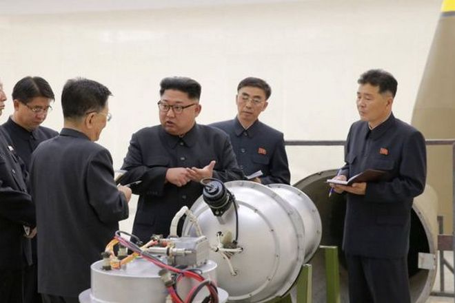 Според официалната севернокорейска телеграфна агенция КЦТА Ким е посетил Институт за ядрени оръжия и е наблюдавал инсталирането на водородна бомба на новата междуконтинентална балистична ракета.