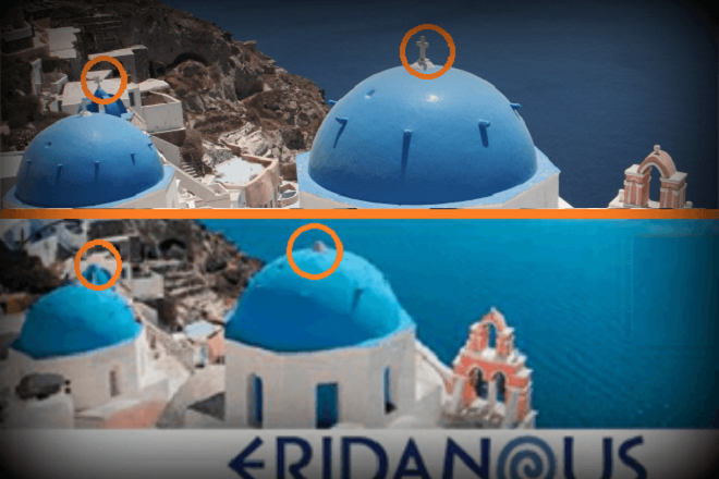 В напълно безсмислен опит за проява на либерализъм и верска толерантност обаче на опаковките кръстовете от прочутите сини кубета се оказаха заличени.