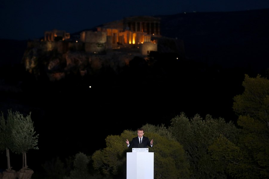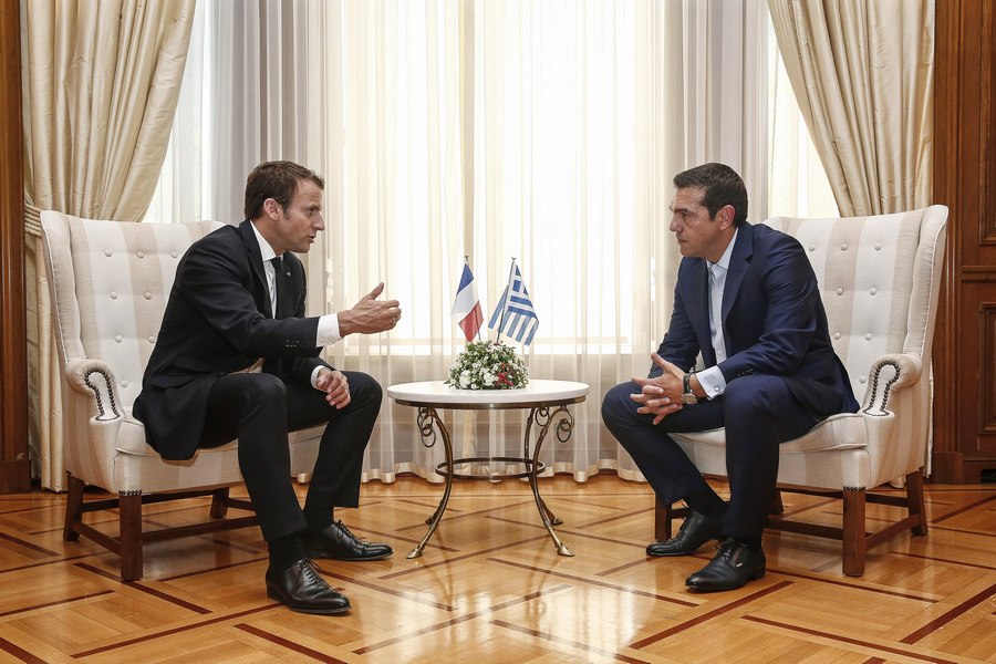 Макрон приветства непопулярните реформи на гръцкия премиер Алексис Ципрас и изтъкна, че след години на изтощителни ограничения и "невероятни усилия на хората", страната най-накрая преодолява проблемите си.