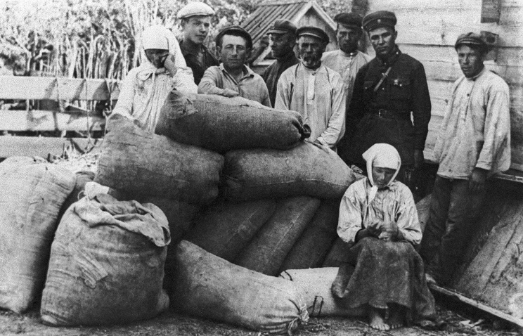 Селяните са обвинени, че умишлено крият зърното. Извършва се масово разксулачване и депортация„