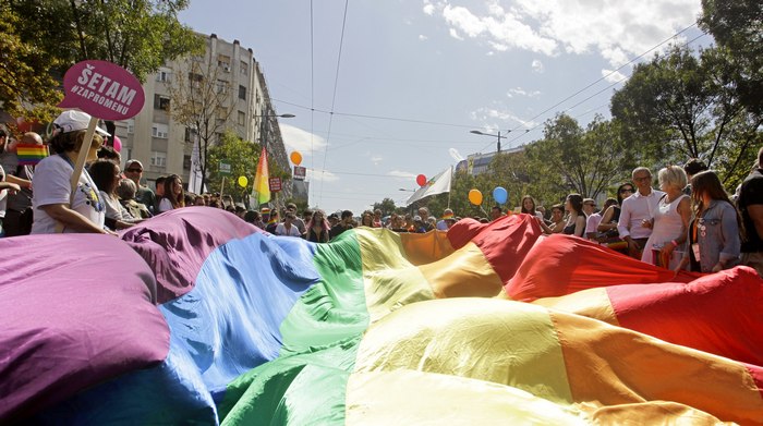 Тазгодишният прайд в Сърбия се провежда при засилени мерки за сигурност. По улиците, които са затворени от 8 ч сутринта, се разхождат около две хиляди полицаи - два пъти повече от участниците в самото шествие. Но и два пъти по-малко от миналата година. Хеликоптер пък кръжи над маршрута на шествието
