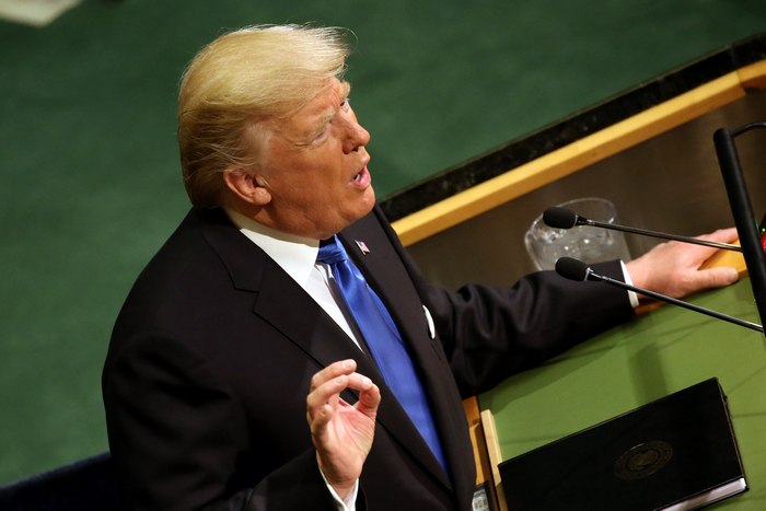 Тя бе мрачна, отчаяна, от нея лъхаше на авторитаризъм и трептеше от заплахи. Никой от предшествениците му не бе заставал в залата на ООН и не бе заплашвал да изтрие една страна - в случая Северна Корея - от лицето на планетата. Това бе напомпана версия на "оста на злото", както президентът нарече "престъпните държави" и прибегна до риториката от времето на Джордж Буш-младши, за да предупреди Пхенян, Иран, Венецуела и Куба.