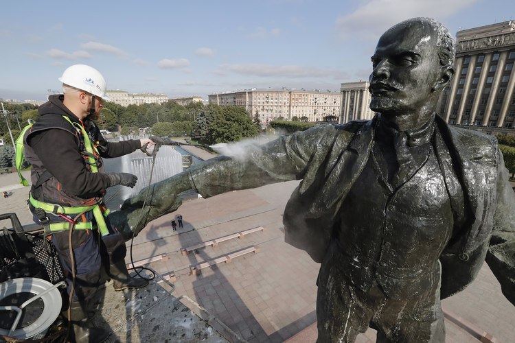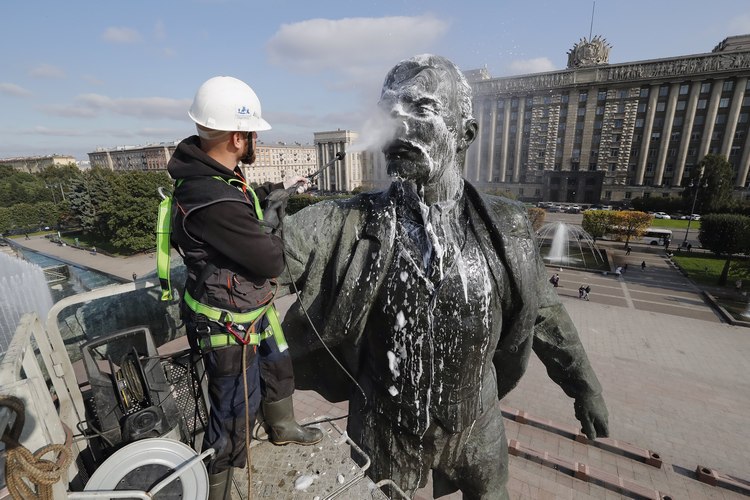 В Санкт Петербург отрано започнаха подготовката за 100-годишнината от Октомврийската революция, която се чества на 7ноември. Днес на щателно хигиенизиране беше подложен паметник в цял ръст на вожда на революцията Владимир Ленин. Той беше сапунисан, облят със силна водна струя и изкъпан.