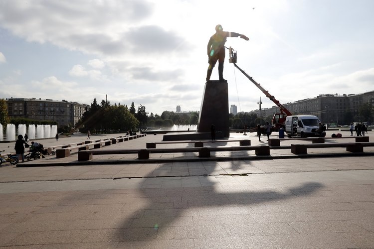 Паметникът на площад "Москва" в Петербург е от 1970 г. Негов автор е скулпторът М. К. Аникушин. След смъртта на Ленин през 1924 г. започват масово да се издигат негови мемориали, скулптори и т.н. В някогашния Ленинград те са особено многобройни.