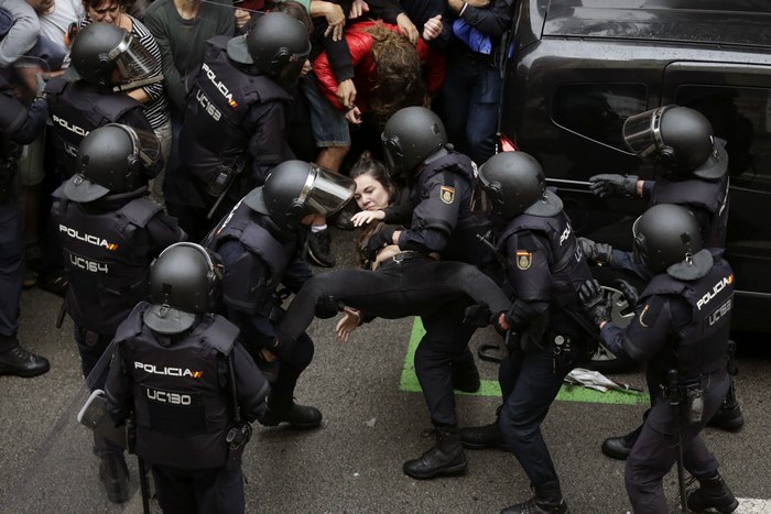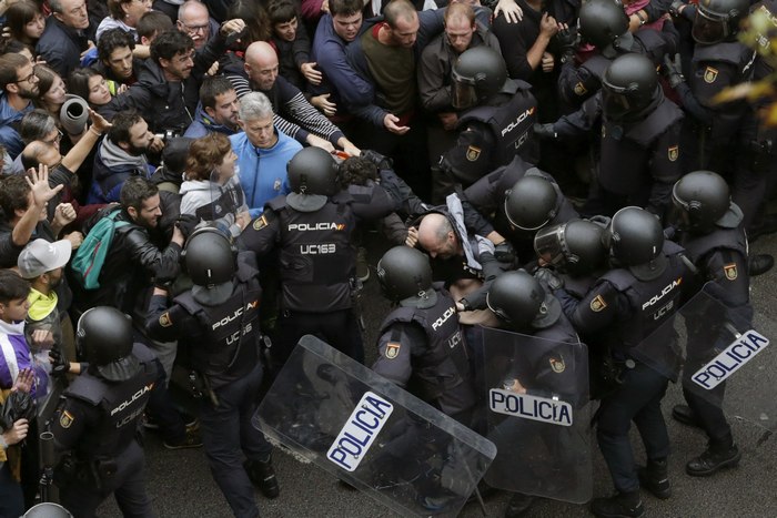 Местната полиция не участва в укротяването на хората пред бюрата, затова към Каталуня са изпратени хиляди отряди от цялата страна. Униформените се стремят да затворят секциите, както и да изземат урните.
