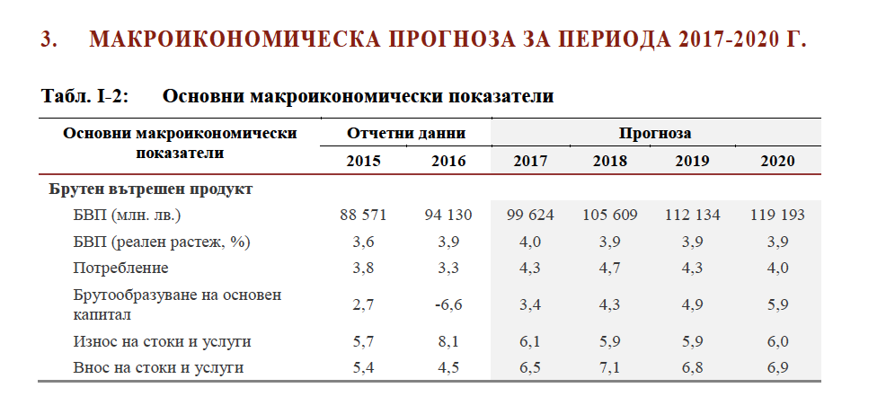 На фона на това кабинетът не предвижда по-висок ръст на икономиката, става ясно от разчетите за периода 2018-2020 г.