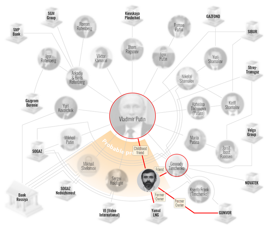 Генадий Тимченко е най-богатият сред приближените на Путин и според руското издание на "Форбс" състоянието му възлиза на 16 млрд. долара. Той притежава дялове от производителите на природен газ "Новатек" и "Сибур", "Стройтрансгаз", строителна фирма, която често печели договори с "Газпром".