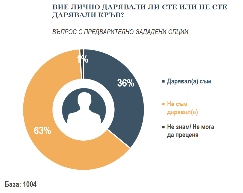 Българите си пазят кръвта ревностно. Едва 36 на сто от хората казват, че са дарявали кръв - което обяснява и постоянния недостиг в кръвните банки в страната. Причината за тази неохотност не е изяснена- вероятно частично и заради липсата на убедителни кампании, но това може да е само част от обяснението.