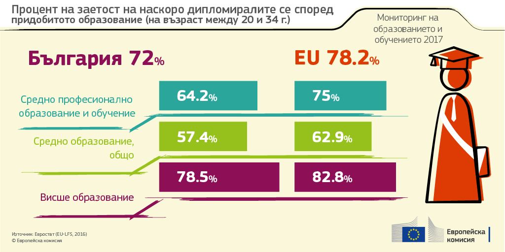 Това пише в Обзора на образованието и обучението за 2017 г. на Европейската комисия в частта, която е за България.