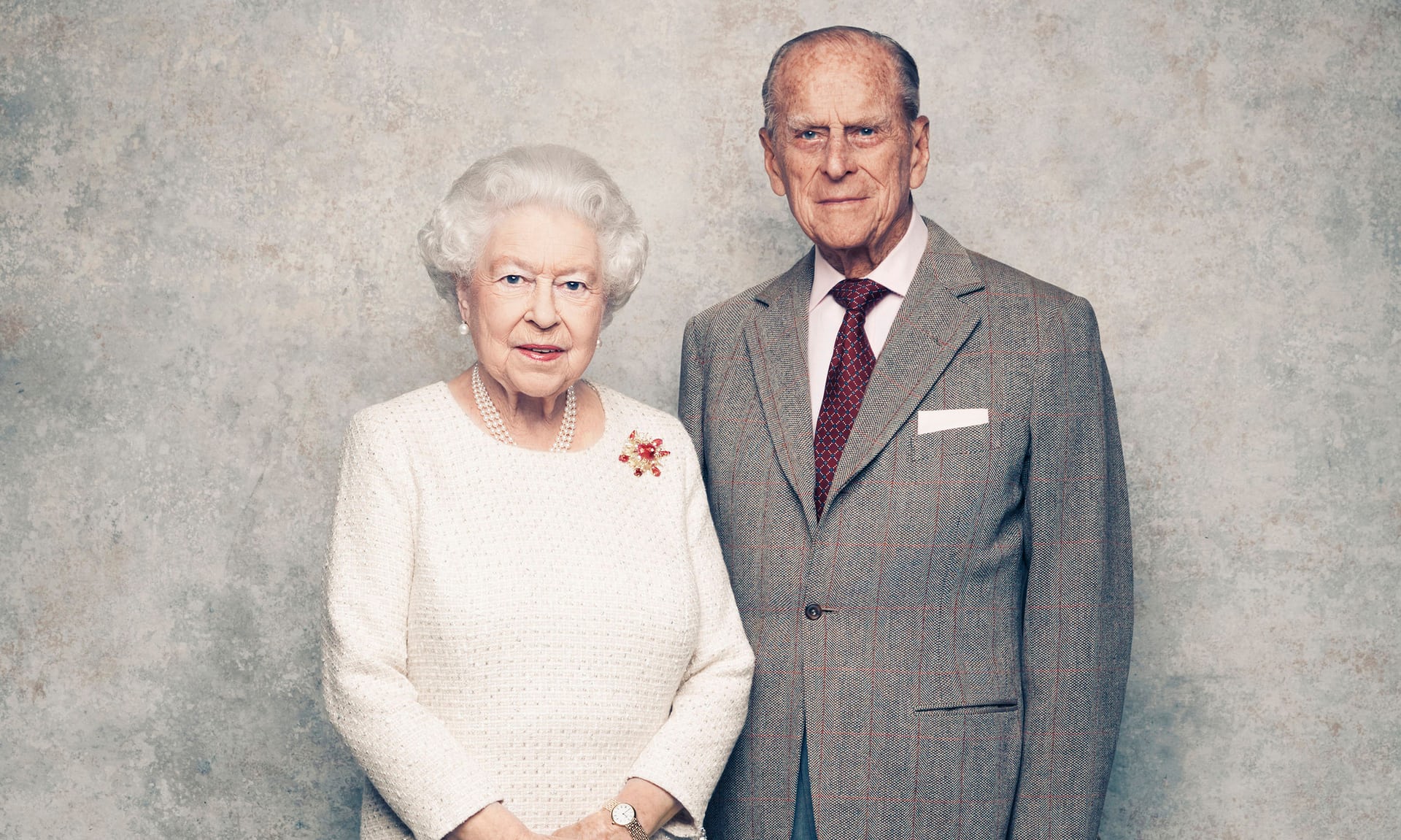 На последните кадри, споделени вчера, кралицата и херцогът на Единбург са застанали на платинен фон - защото празнуват платинена сватба.