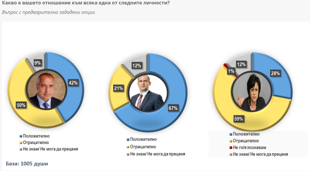 67 на сто харесват Радев, 42 на сто - Борисов