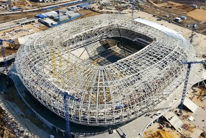 И този стадион се довършва. Екстериорът е почти завършен и има фитуристичен вид. Това е една от най-модерните арени за мондиала. Може да побере най-много 44 918 зрители.