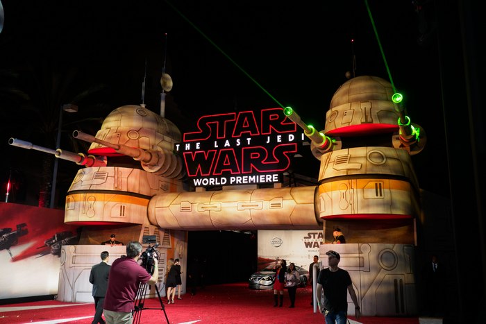 Актьорите и екипът на филма, холивудски звезди и късметлии-фенове гледаха днес първото излъчване на осмия филм от поредицата, втори от новата трилогия на Дисни.