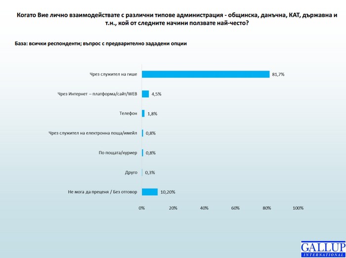 80% от българите все още предпочитат да контактуват "на гише" с различните администрации, дори когато има опции за електронни услуги.
