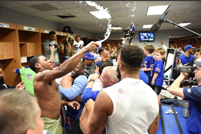 Съблекалнята на "Билс" в Маями избухна, трудно е да се опише какво се случваше там. Остана защитата на "Бенгълс" да спре последната атака на "Балтимор". Това се случи - "Бъфало" продължава, "Рейвънс" отпада.