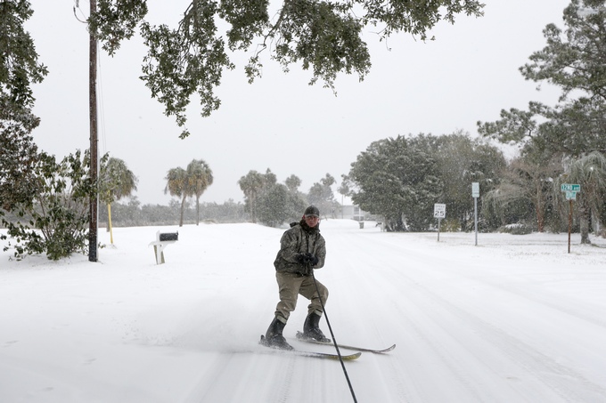 Невиждани поне от 3 десетилетия снегове и ледове сковаха югоизточните щати на САЩ. Трите - Южна Каролина, Джорджия и Флорида, които обикновено се свързват с летни забавления, палми и сърфисти, са засегнати от небивали виелици и студове.