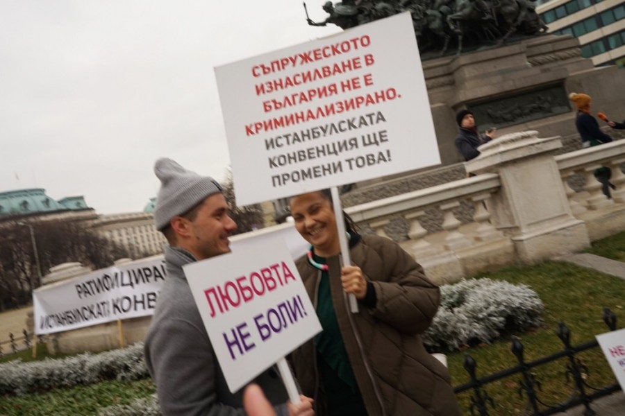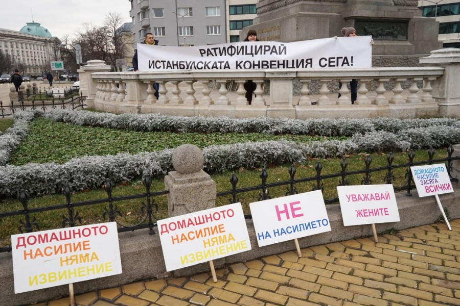 Десетки жени се изправиха с плакати пред парламента и се изказаха в подкрепа на Конвенцията, която според тях ще подобри правните защити срещу жените и децата, подложени на домашно насилие. В протеста участваха представители на Националната мрежа за децата, фондация "Пулс", фондация "Анимус", Българската асоциация за джендър изследвания и други.