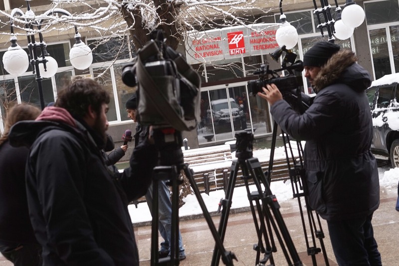 Журналисти, граждани и активисти се събраха на първия протест срещу новия програмен директор на БНТ Емил Кошлуков днес и поискаха оставката му. Акцията се организира в социалната мрежа "Фейсбук" от снощи.