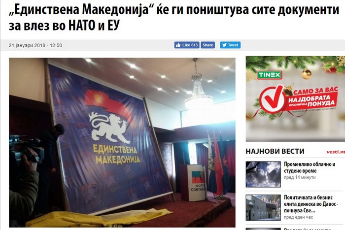 Проруска партия в Македония ще анулира всички документи за влизането на страната в ЕС и НАТО, пише в. "Вечер".