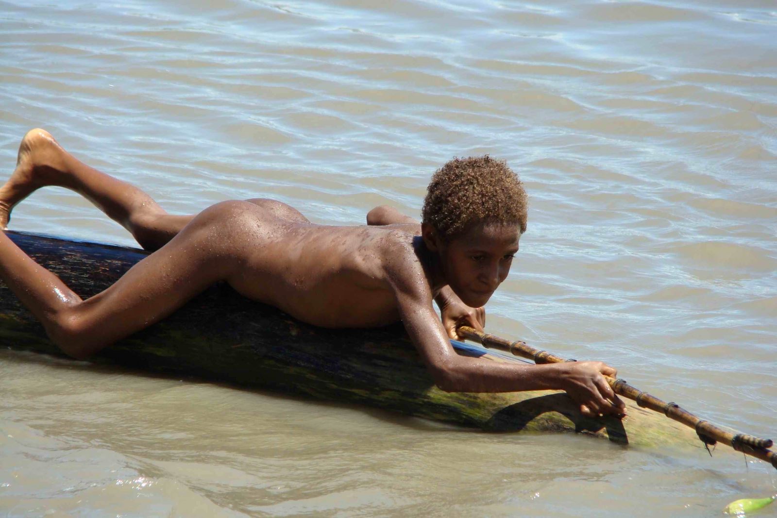 Папуасите живеят в сламени къщи, разпръснати по бреговете. Карат лодки, издялани от корубите на дървета и ходят голи, само с издълбани дълги тикви, с които прикриват интимните си части. Ето как Марио описва началото на приключението “Папуа” в романа си “Дългият сън на крокодила”: