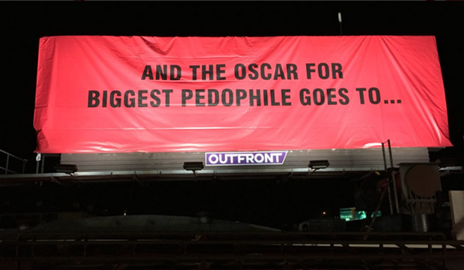 Холивуд осъмна с подсещане за разтърсилия го сексскандал, след като уличен художник покри три билборда с лозунги, обвиняващи развлекателната индустрия в мълчание, предаде Ройтерс.